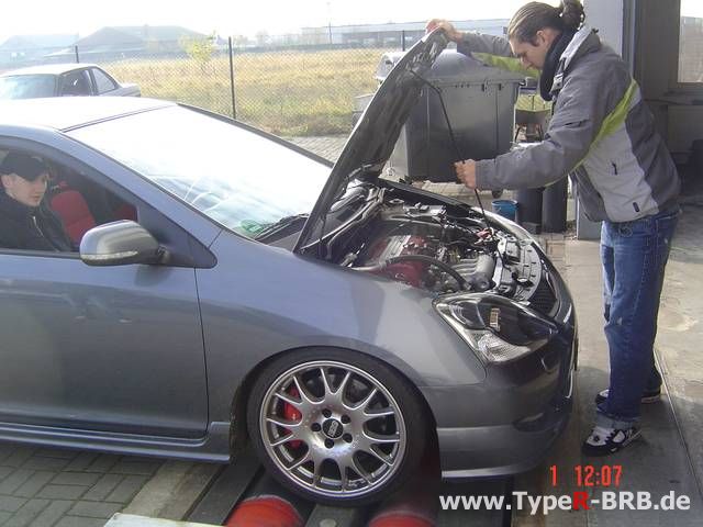Also, Heute waren wir mal wieder auf dem Prüfstand, nachdem wir letztens in Warschau zum Abstimmen waren. Der Grund war die Leistungsmessung an Chris CTR mit dem Buddy Club Krümmer, an Roberts CTR mit der RBC und dem Kpro und bei Ronny die Vergleichsmessung nach der Abstimmung.
